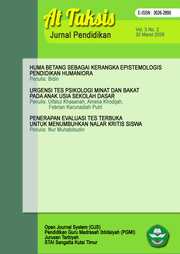 Sari, Erika, Iin Nurbudiyani, and Asep Solikin. “Penerapan Manajemen Berbasis Sekolah Budaya Huma Betang Menuju Transformasi Karakter Peserta Didik (Studi Kasus: Sekolah Dasar Di Palangka Raya)” 20, no. September (2025).